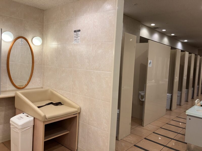 イルカショー会場にオムツ替えスペースはあったのですが、会場の観客席の数に対して、女性トイレに1台(男性トイレにももしかしたら1台あるかも?)しかないので、相当混んでしまいそうです。※きれいなのはありがたかったです