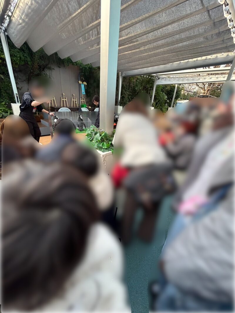 フレンドリータイムが開催される広場はちょっと小さめ。平日でも開始時間ぴったりくらいにペンギンショーを見に行ったら、よく見える場所は全部埋まっており人の合間を縫ってなんとか見れるという状態でした。小さいお子さんを肩車してあげてる方もいて、良い場所が取れなかったらそのくらい見えないです・・・